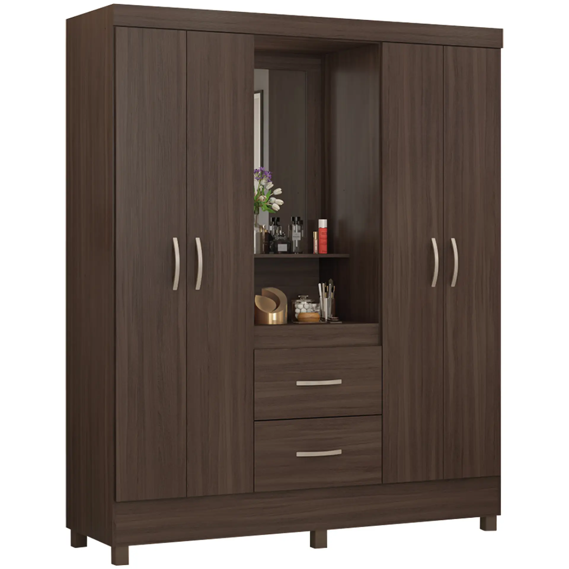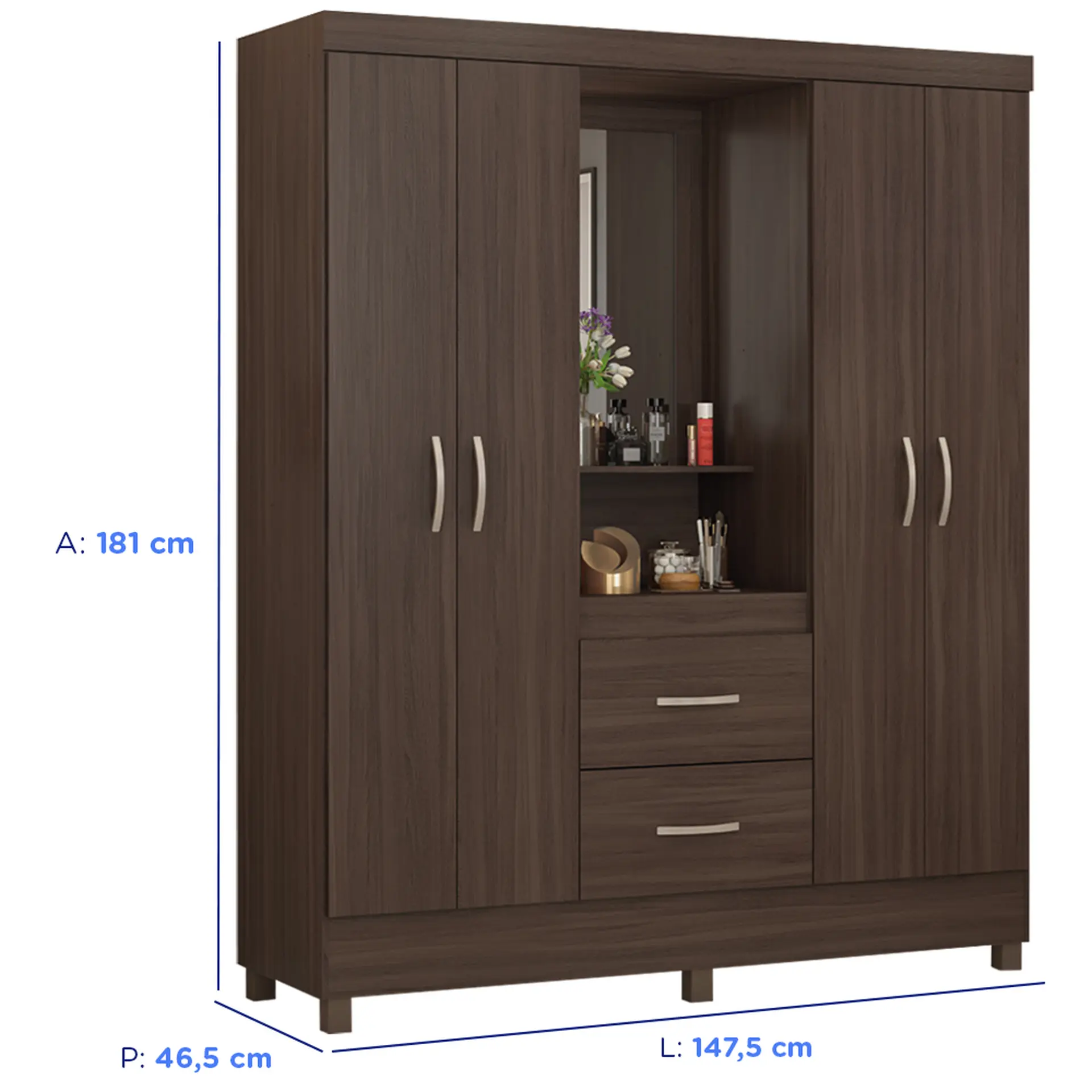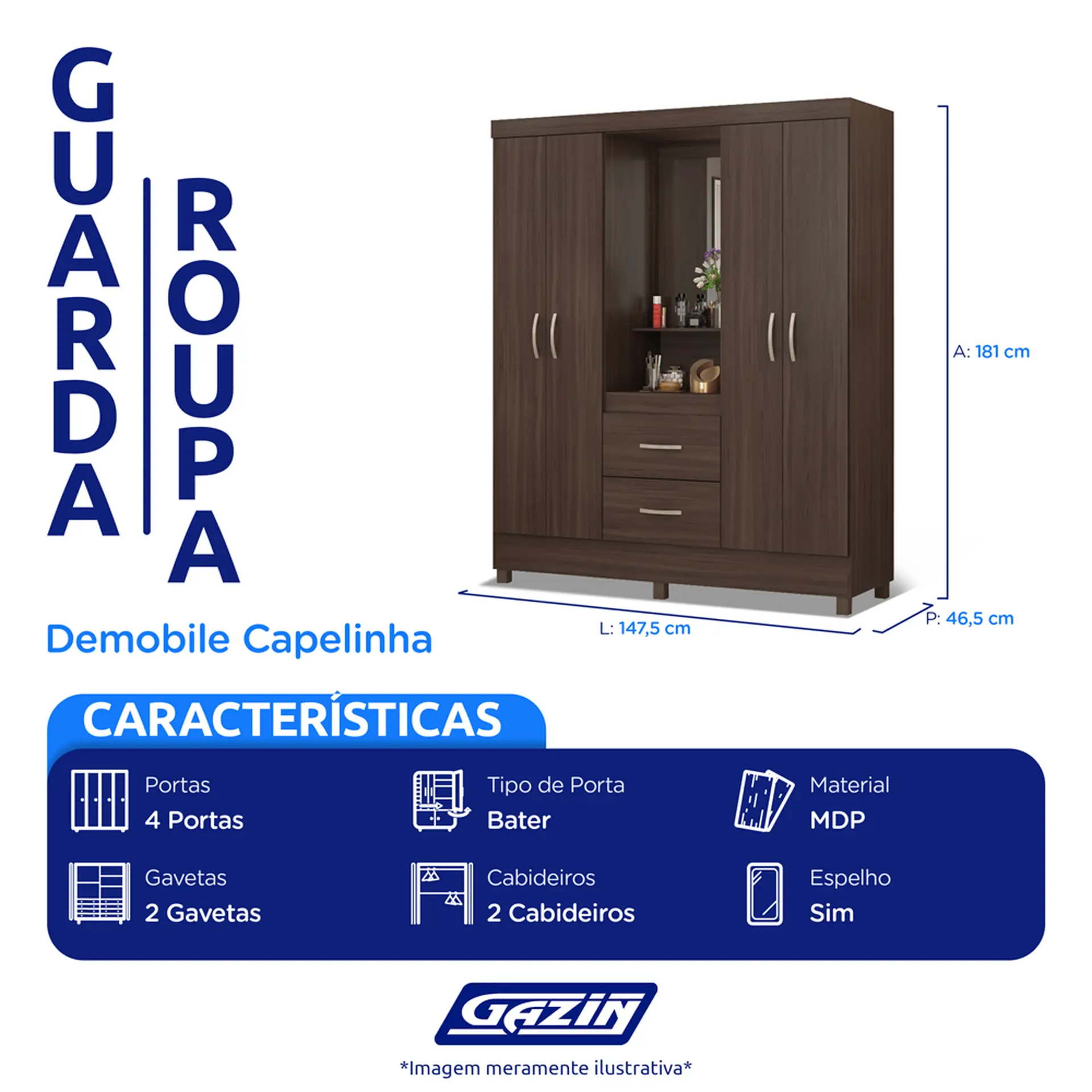 Guarda-Roupa Solteiro 4 Portas Bater 2 Gavetas Capelinha Lord Demobile – Café Touch