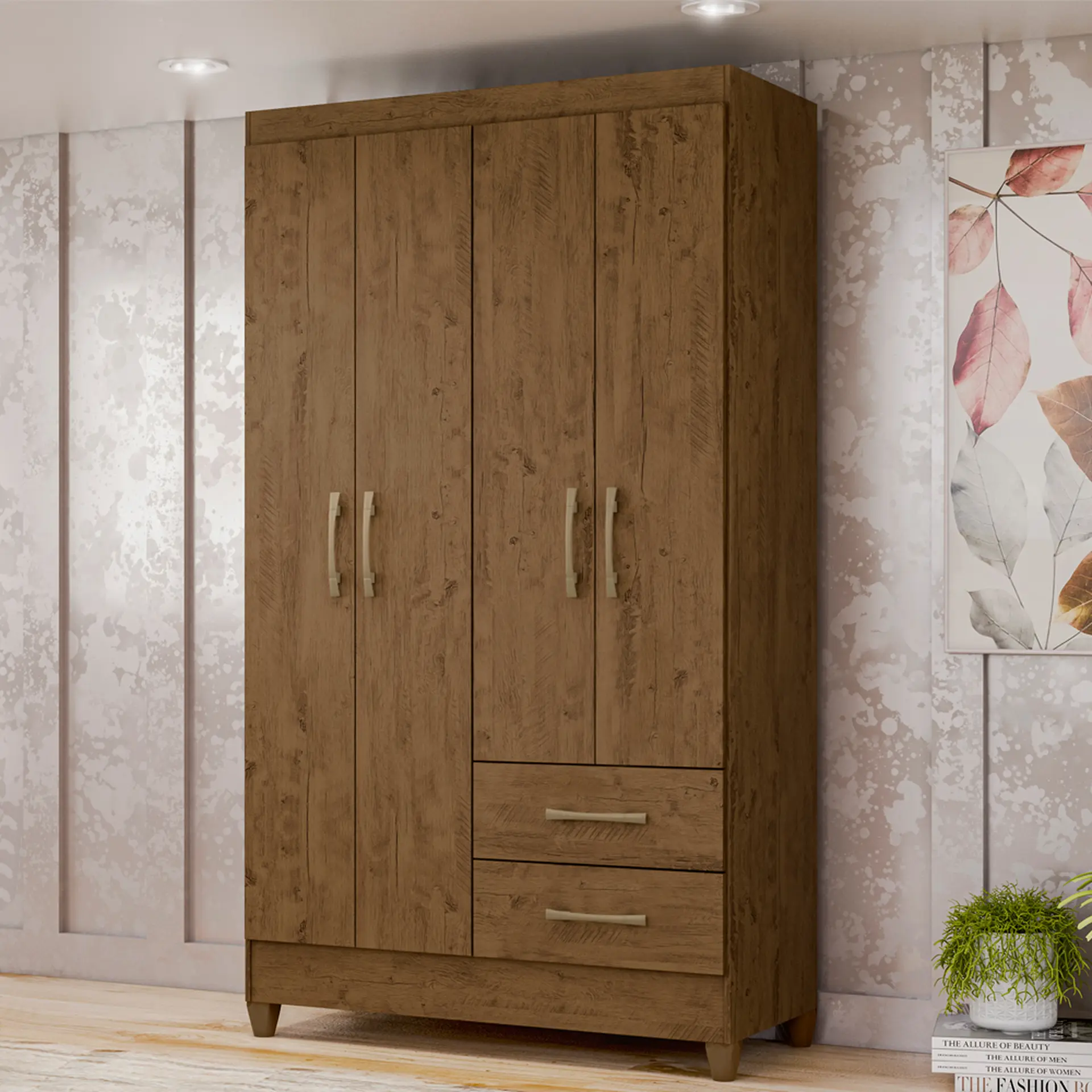 Guarda-Roupa Solteiro 4 Portas Bater 2 Gavetas Chile Moval – Castanho