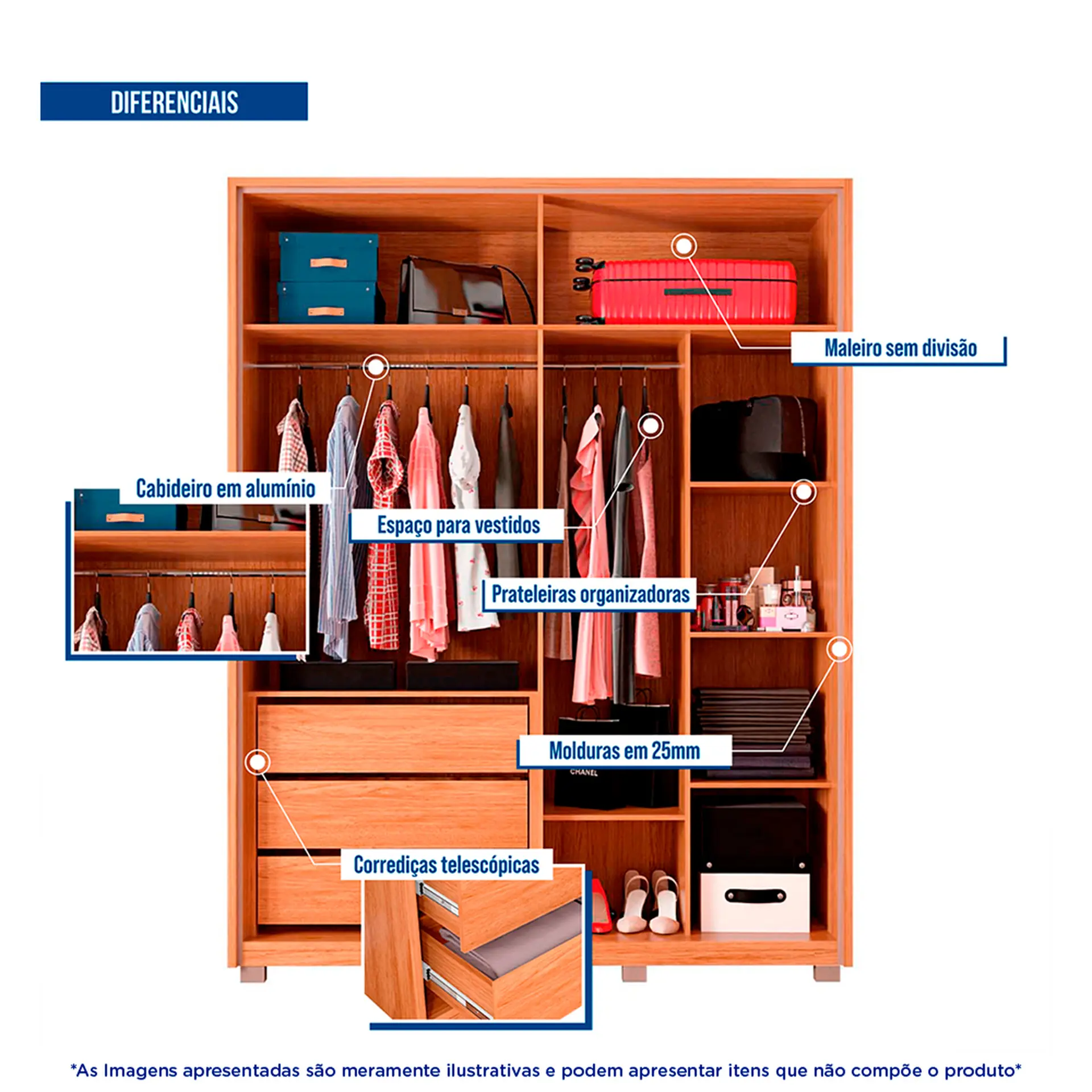 O Roupeiro Caemmun Apollo é a solução ideal para quem busca um móvel funcional e estiloso para o quarto. Com uma estrutura robusta composta de MDP de 12 mm, 15 mm e 25 mm, além de HDF de 3 mm, este roupeiro é projetado para durar e suportar o uso diário. Confira mais detalhes: Estrutura de qualidade! Equipado com 4 portas e 3 gavetas, o roupeiro Apollo oferece amplo espaço para armazenar roupas, acessórios e outros itens pessoais. As gavetas possuem corrediças telescópicas, que proporcionam um deslizamento suave e silencioso. O interior conta com 2 cabideiros em alumínio, ideais para organizar suas roupas de forma prática e acessível.Revestimento sofisticado! Os pés do roupeiro asseguram estabilidade, enquanto o revestimento das bordas com papeis ou PVC especiais acrescenta um toque de refinamento ao móvel. Este roupeiro é a combinação perfeita de funcionalidade, durabilidade e estilo, atendendo às necessidades de organização do seu quarto com elegância.Sobre a marca: qualidade Caemmun!A Caemmun Movelaria está situada em Arapongas, um dos maiores polos moveleiros do país. A Caemmun iniciou o Grupo Munhoz Caetano composta por grandes marcas, como a Caemmun, Aroma e a Líder Design. Com uma experiência de mais de 27 ano no mercado moveleiro e preocupada com a preservação dos recursos naturais, surgiu a Caemmun Agropecuária, que consiste em fazendas de Eucalipto e Pinus para a fabricação dos móveis.