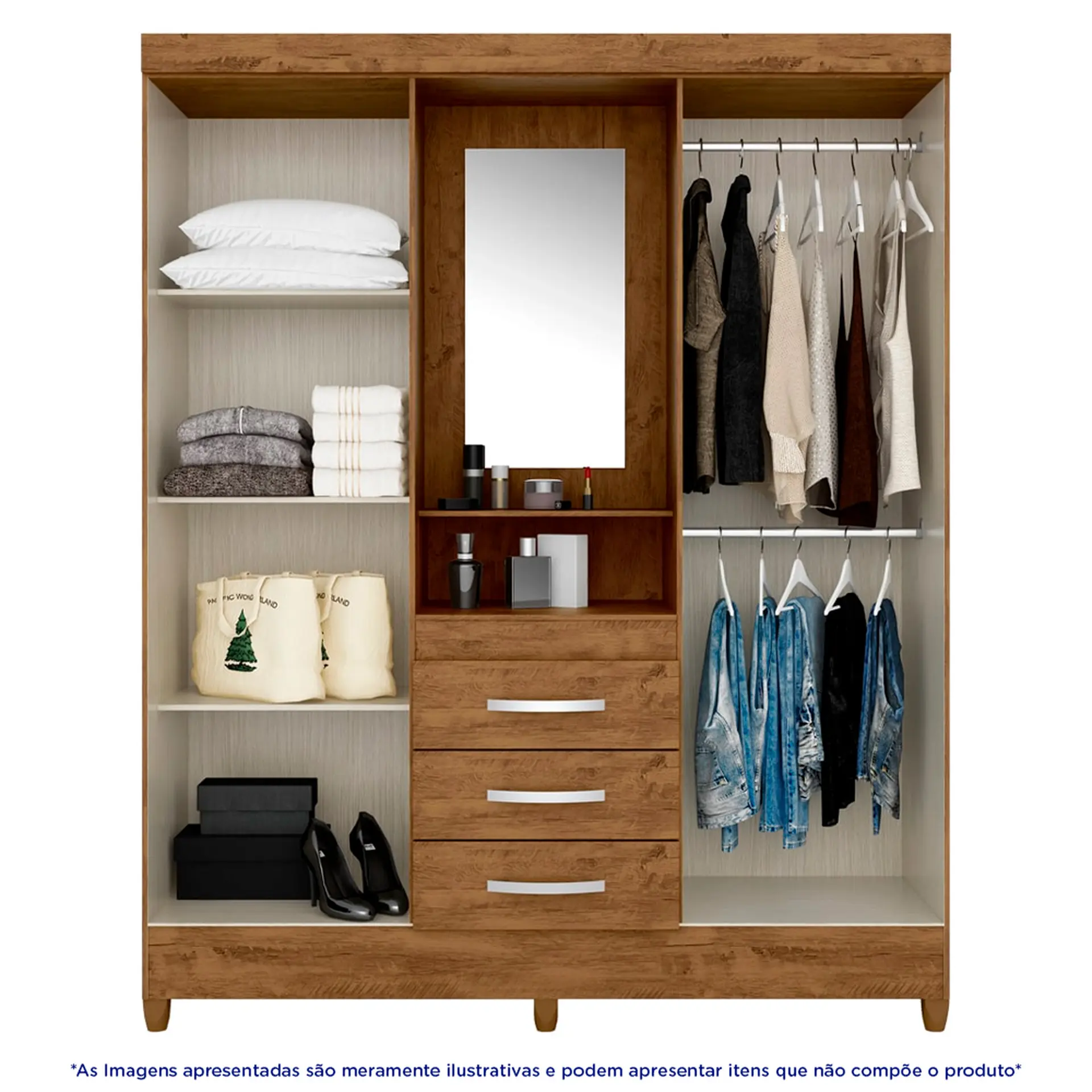 Informações adicionais Produtos Relacionados 3 cores Guarda-Roupa Solteiro 4 Portas Bater 3 Gavetas Capri Moval Roupeiro – Castanho Cód.