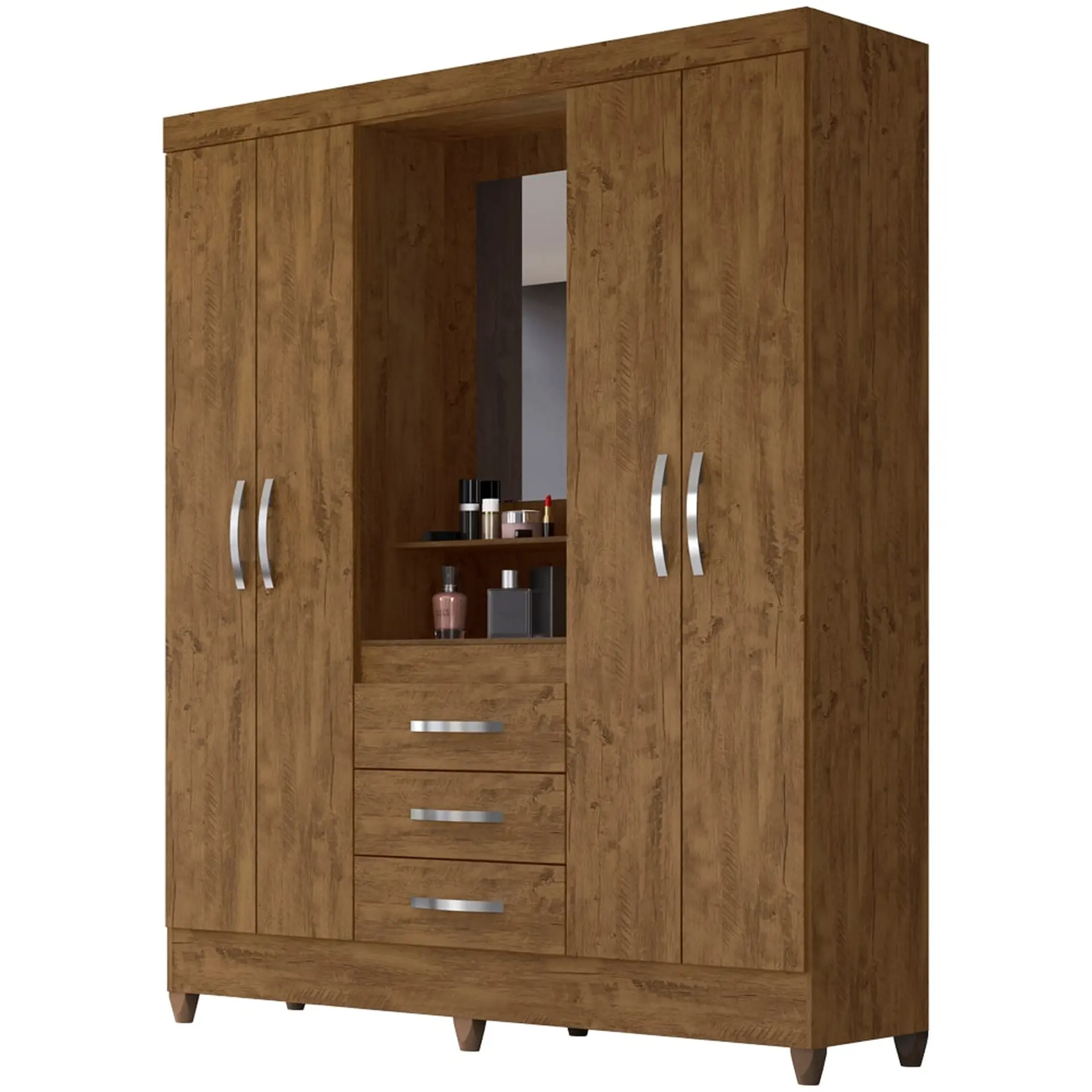 Início Moveis Guarda-Roupa Solteiro 4 Portas Bater 3 Gavetas Capri Moval Roupeiro – Castanho