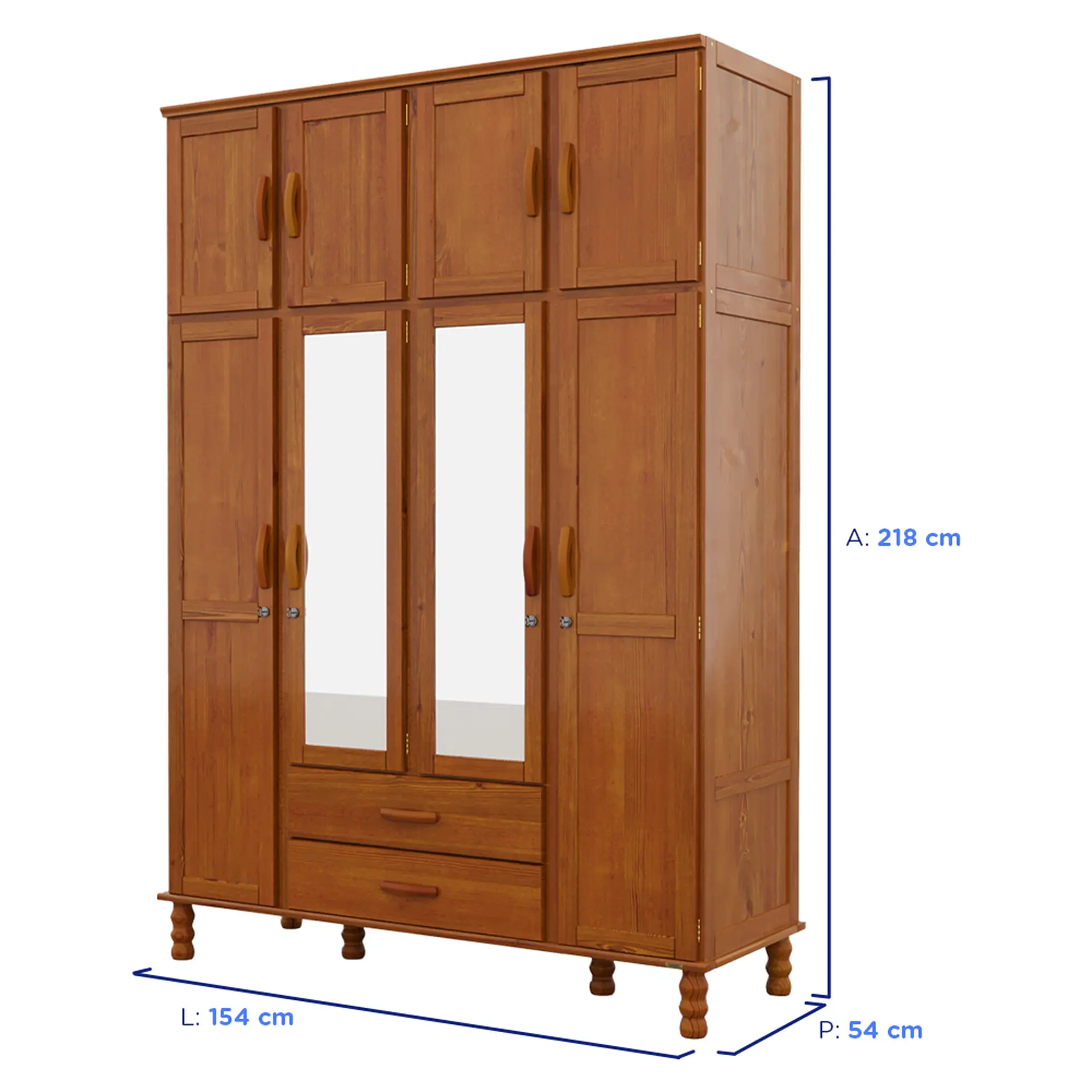 Guarda-Roupa Solteiro 8 Portas Bater 2 Gavetas Casual Serpil – Cedro Acetinado