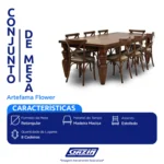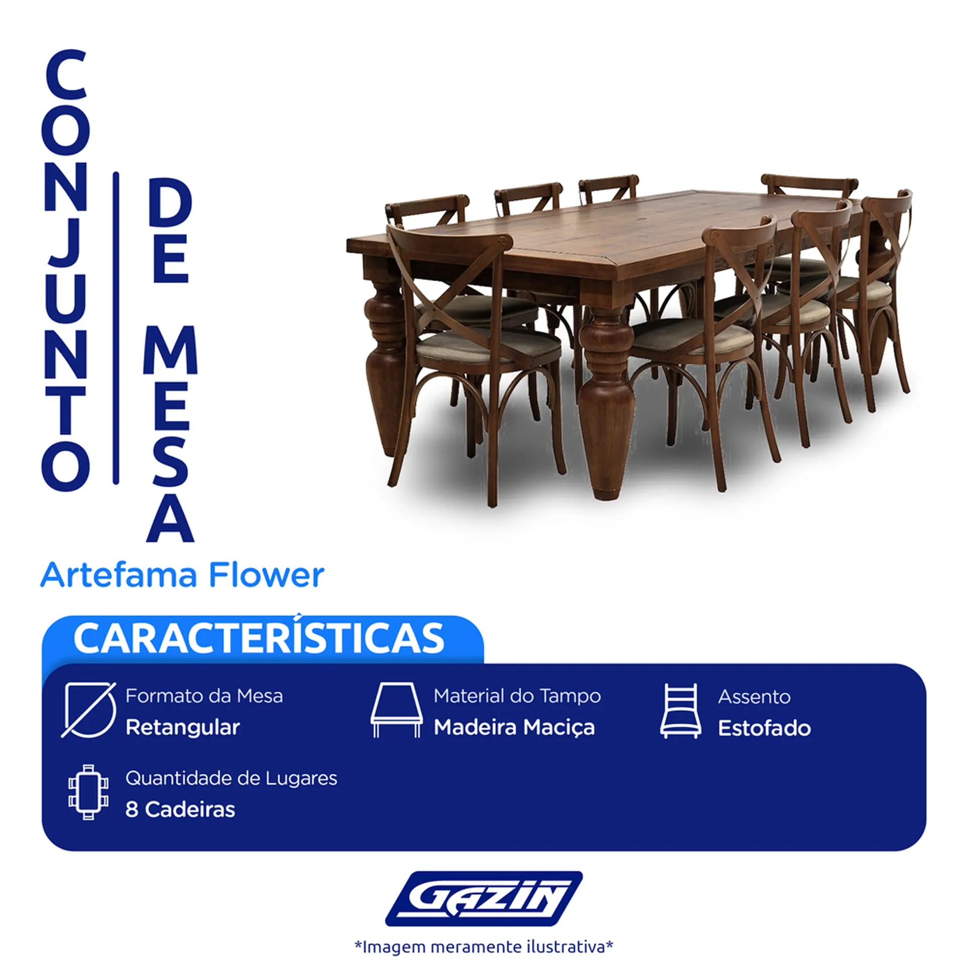 MESA DE JANTAR FLOWER 8 CADEIRAS PARIS MADEIRA MACIÇA ARTEFAMA
