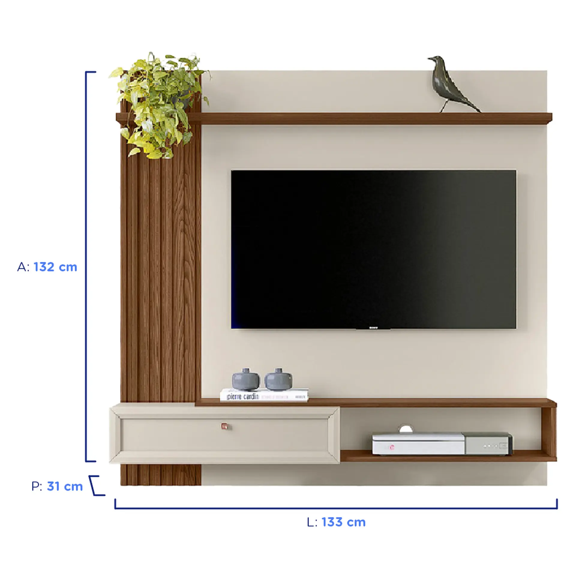 Painel para TV até 55” 1 Porta Basculante Alvorada Linea Brasil – Freijo/Off White