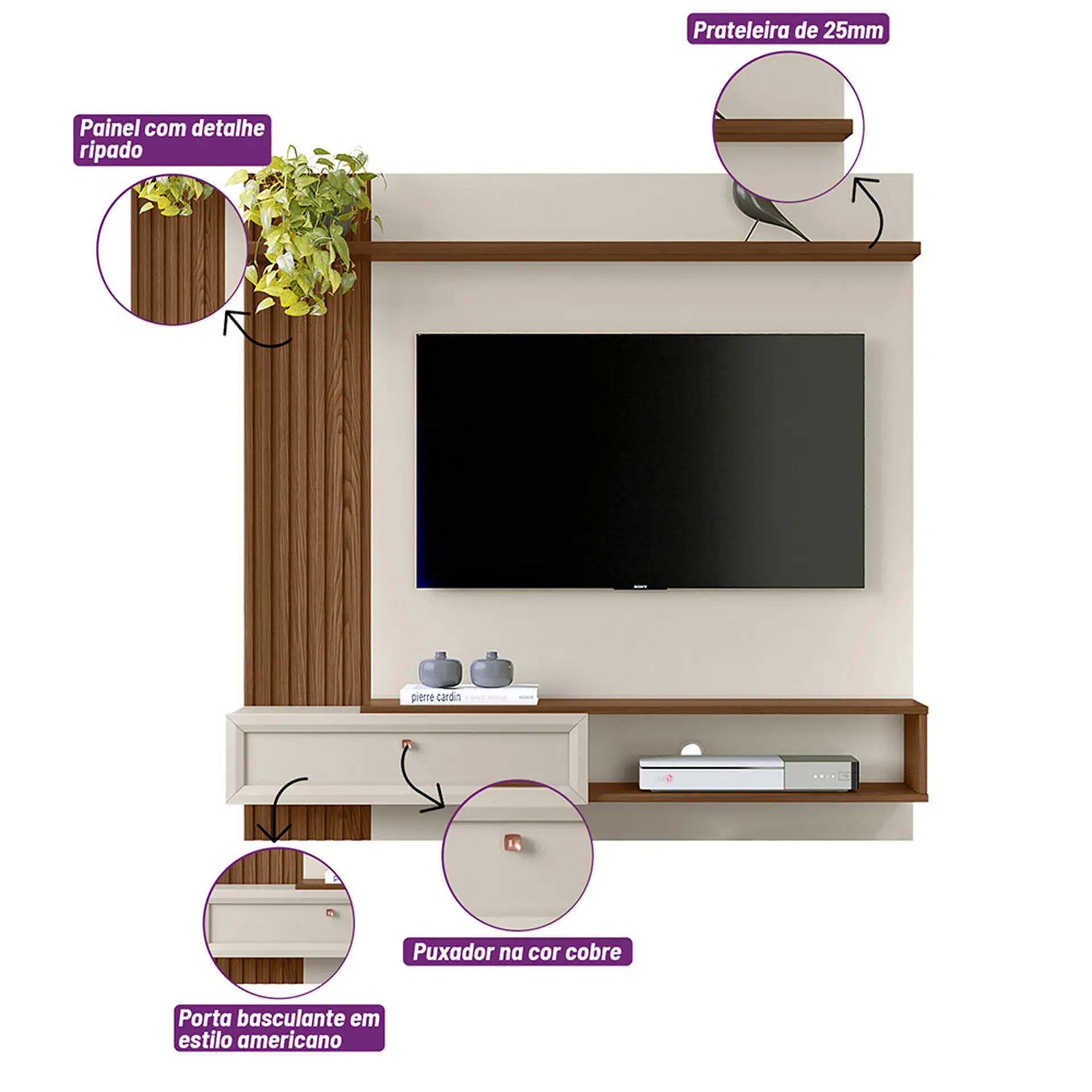 possui uma elegância sutil e minimalista que vai completar sua sala de estar! O espaço para TV de até