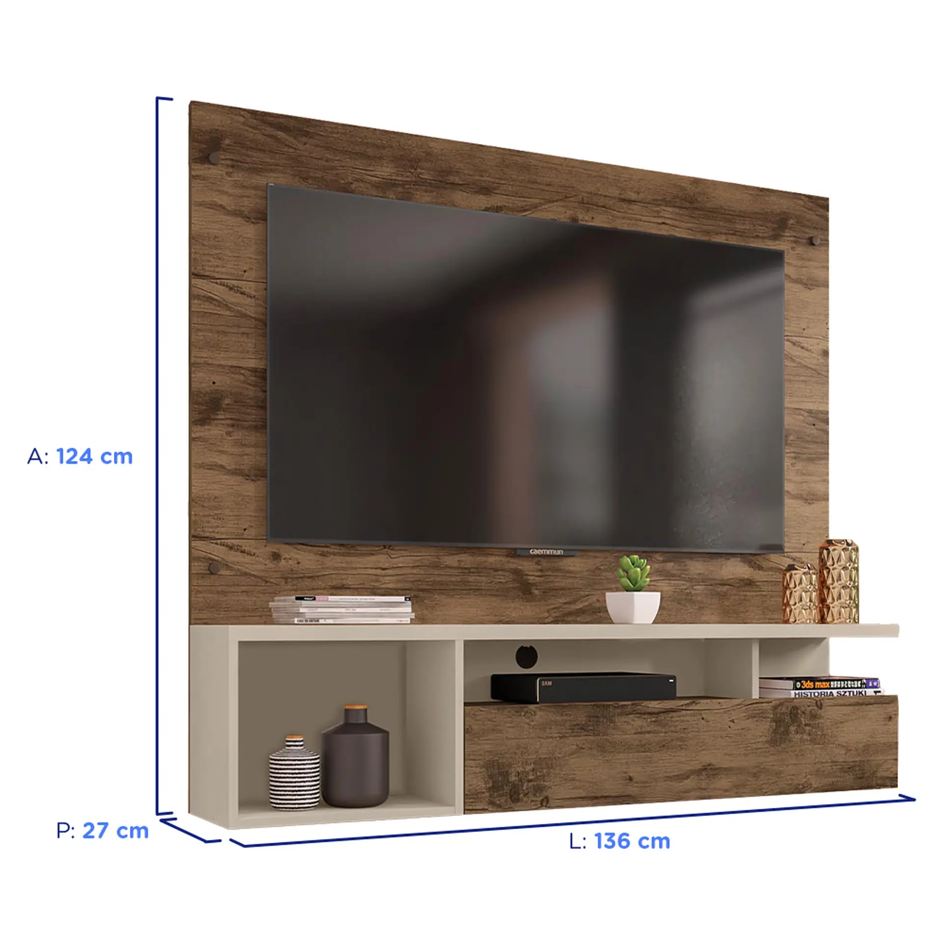 Informações adicionais Produtos Relacionados 3 cores Painel para TV até 55″ com Nicho Gold Caemmun – Jatobá Cód.