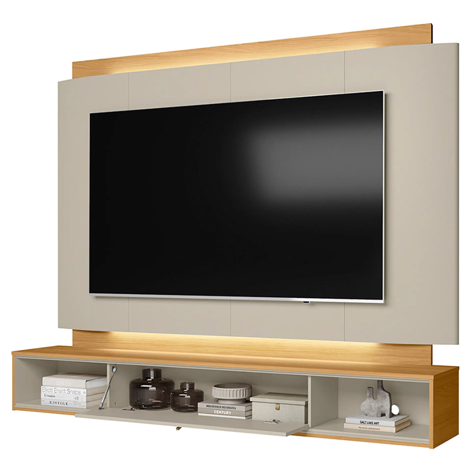 Painel para TV até 75″ 1 Porta Basculante LED Havana Linea Brasil – Tauari/Off White Fosco – Bivolt