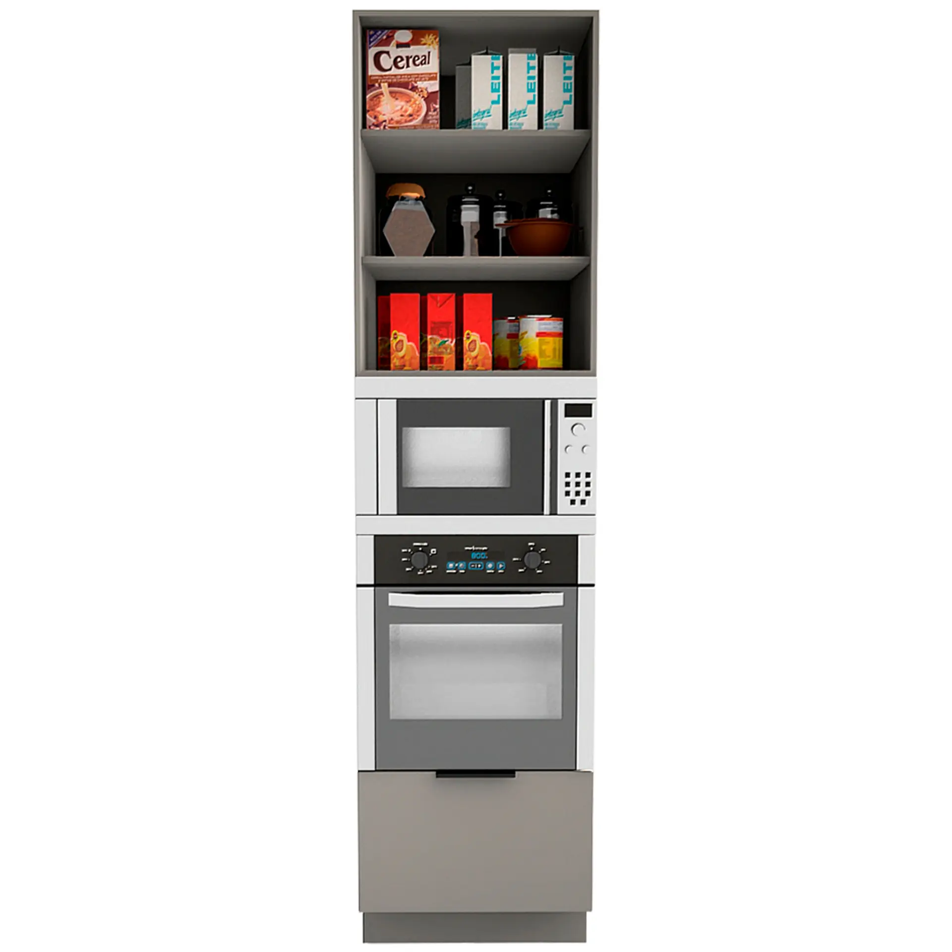 O Paneleiro Telasul Lumina foi projetado para quem deseja uma cozinha moderna, organizada e prática. Com design funcional e sofisticado, ele acomoda aparelhos como forno e micro-ondas de embutir, otimizando o uso do espaço e trazendo mais conveniência ao seu dia a dia.
