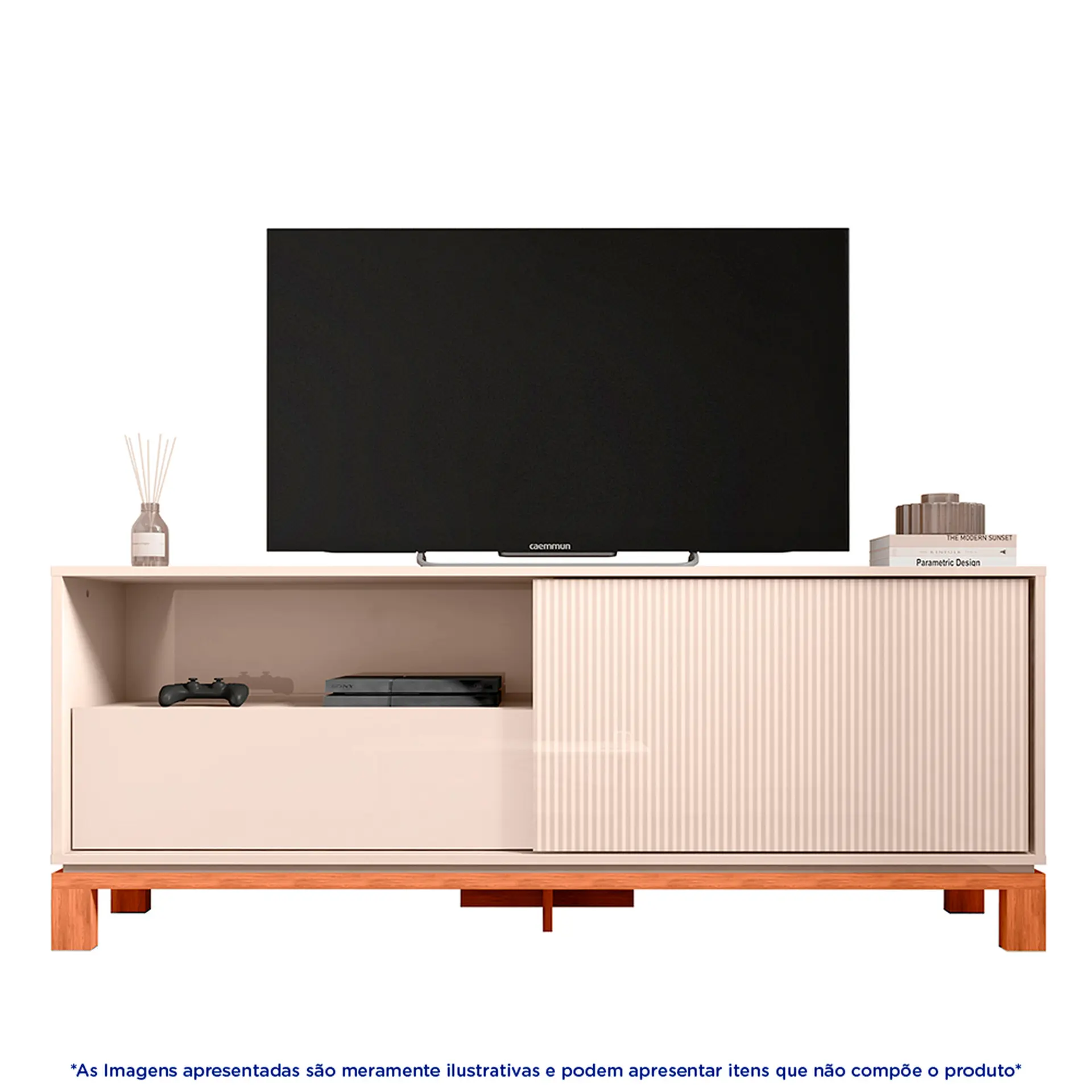 Rack para TV até 55″ 01 Porta 01 Gaveta Mondrian Caemmun – Off White/Freijó