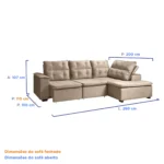 SOFÁ DE CANTO RETRÁTIL E RECLINÁVEL COM CHAISE 3 LUGARES TAKEI VIVIANE