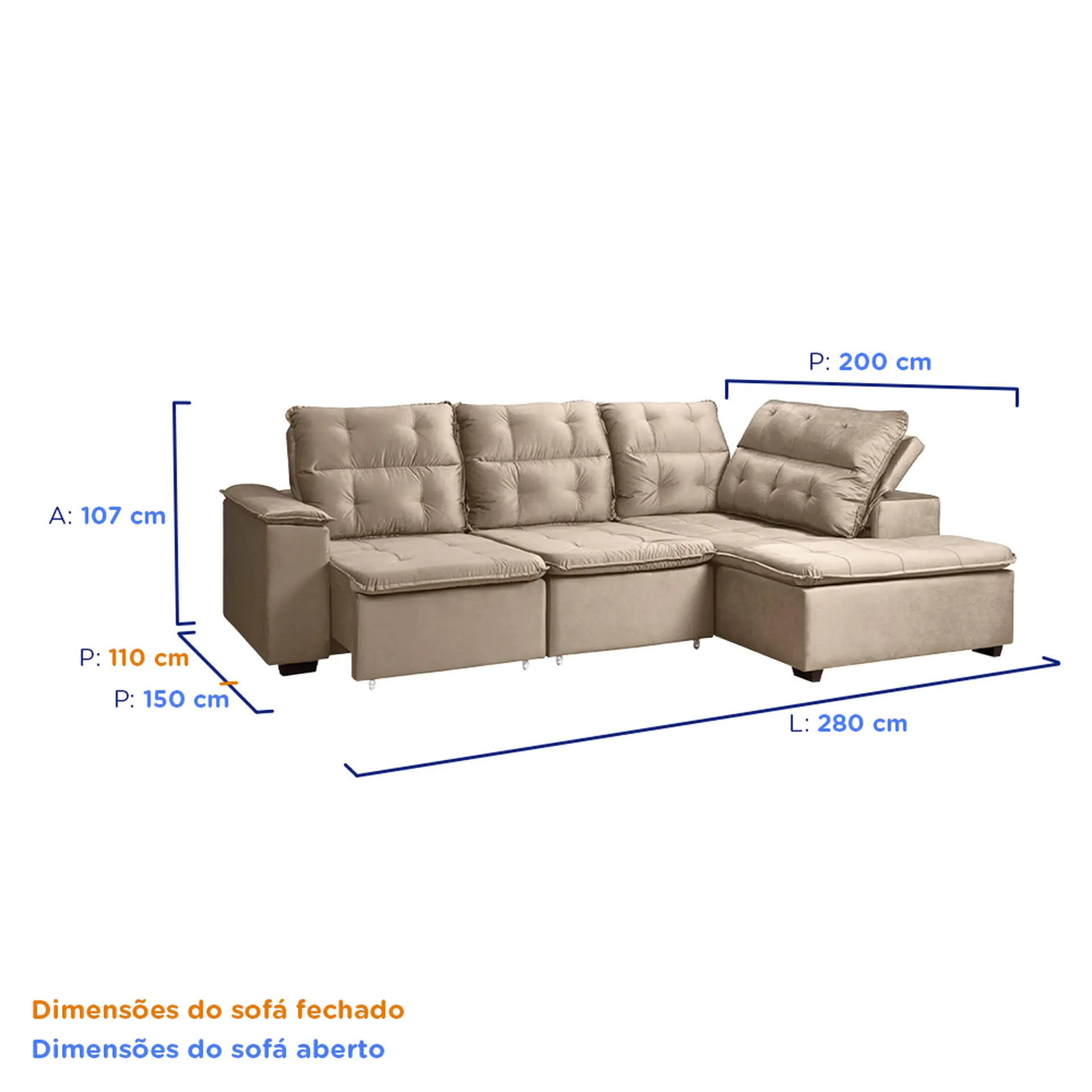 Em até 1x de R$1.910,03 sem jurosEm até 12x de R$180,61 com juros À vistaR$1.719,03no PixInformações adicionais Produtos Relacionados 3 cores Sofá de Canto Retrátil e Reclinável com Chaise 3 Lugares Takei Viviane – Marrom Claro – Veludo Cód.