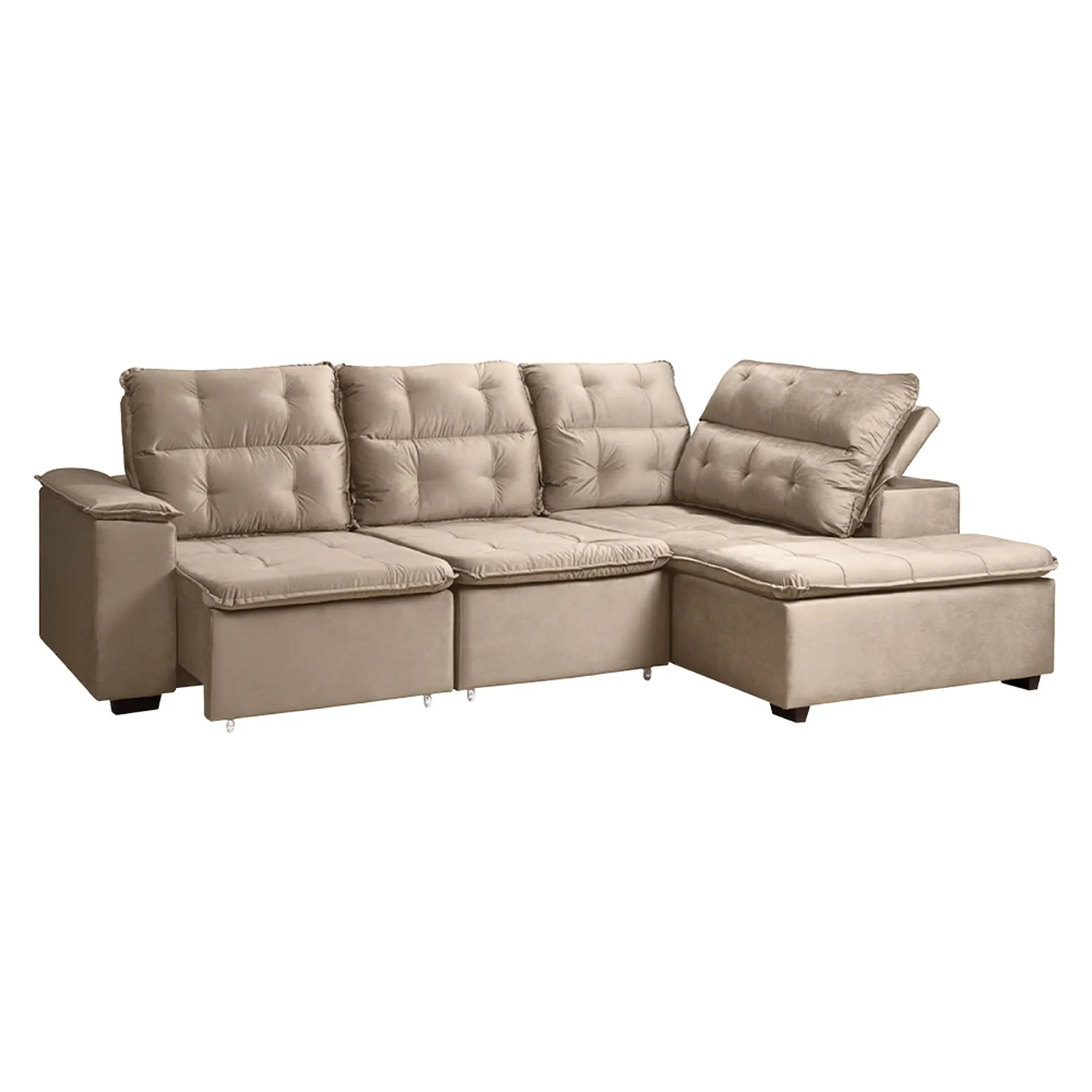 Em até 1x de R$687,38 sem jurosEm até 12x de R$65,00 com juros À vistaR$618,64no PixSofá de Canto Retrátil e Reclinável com Chaise 3 Lugares Takei Viviane – Marrom Claro – Veludo