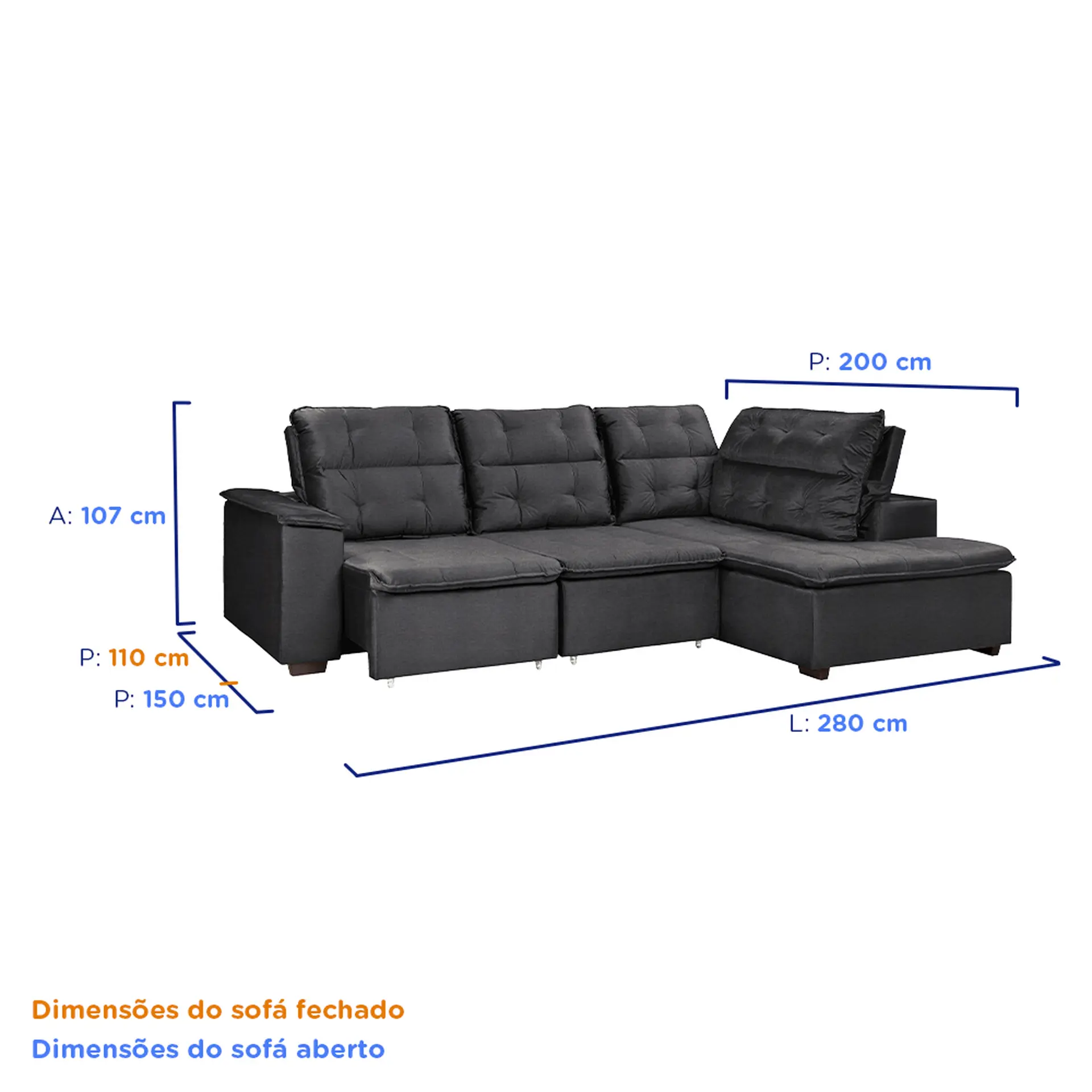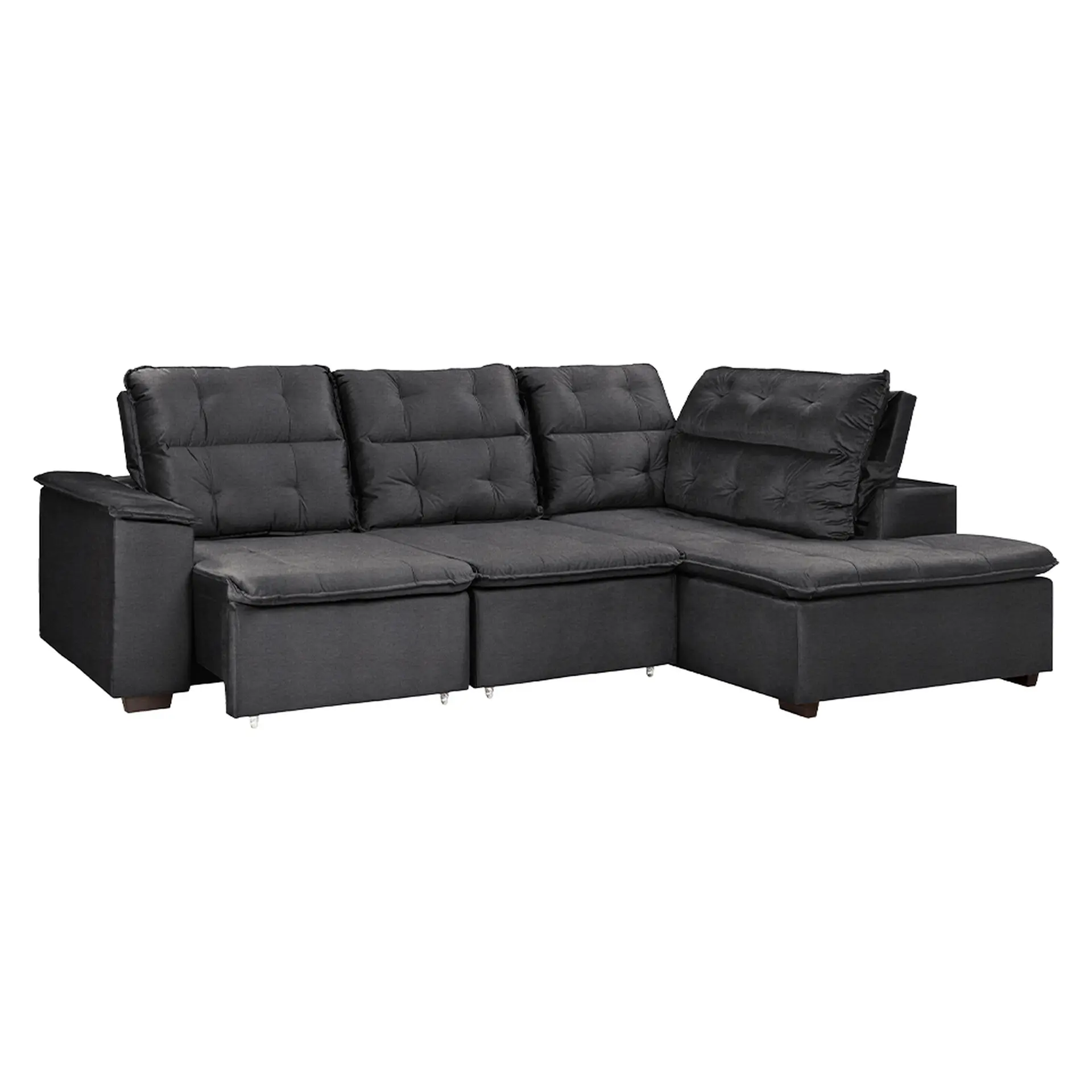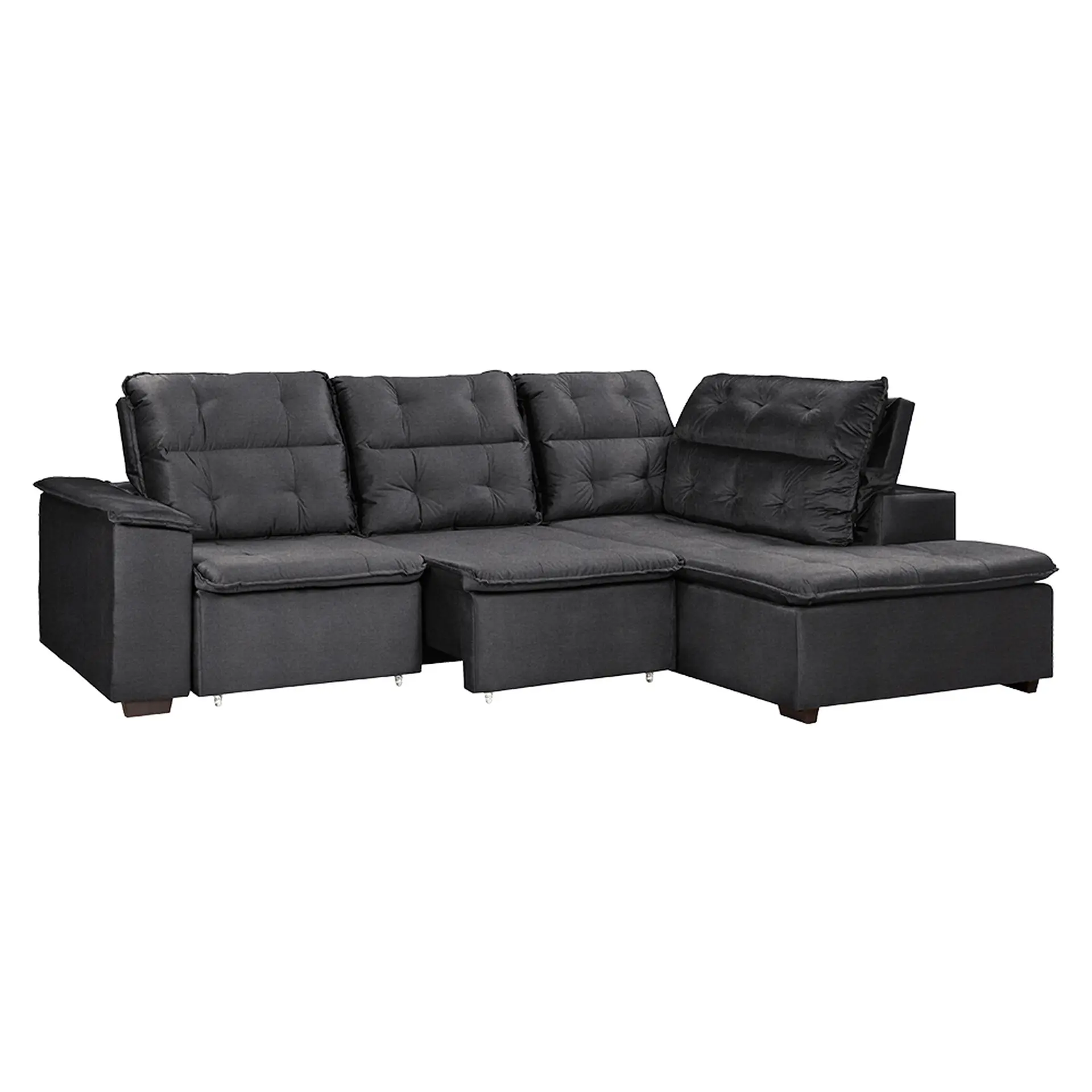 Sofá de Canto Retrátil e Reclinável com Chaise 3 Lugares Takei Viviane – Titanium