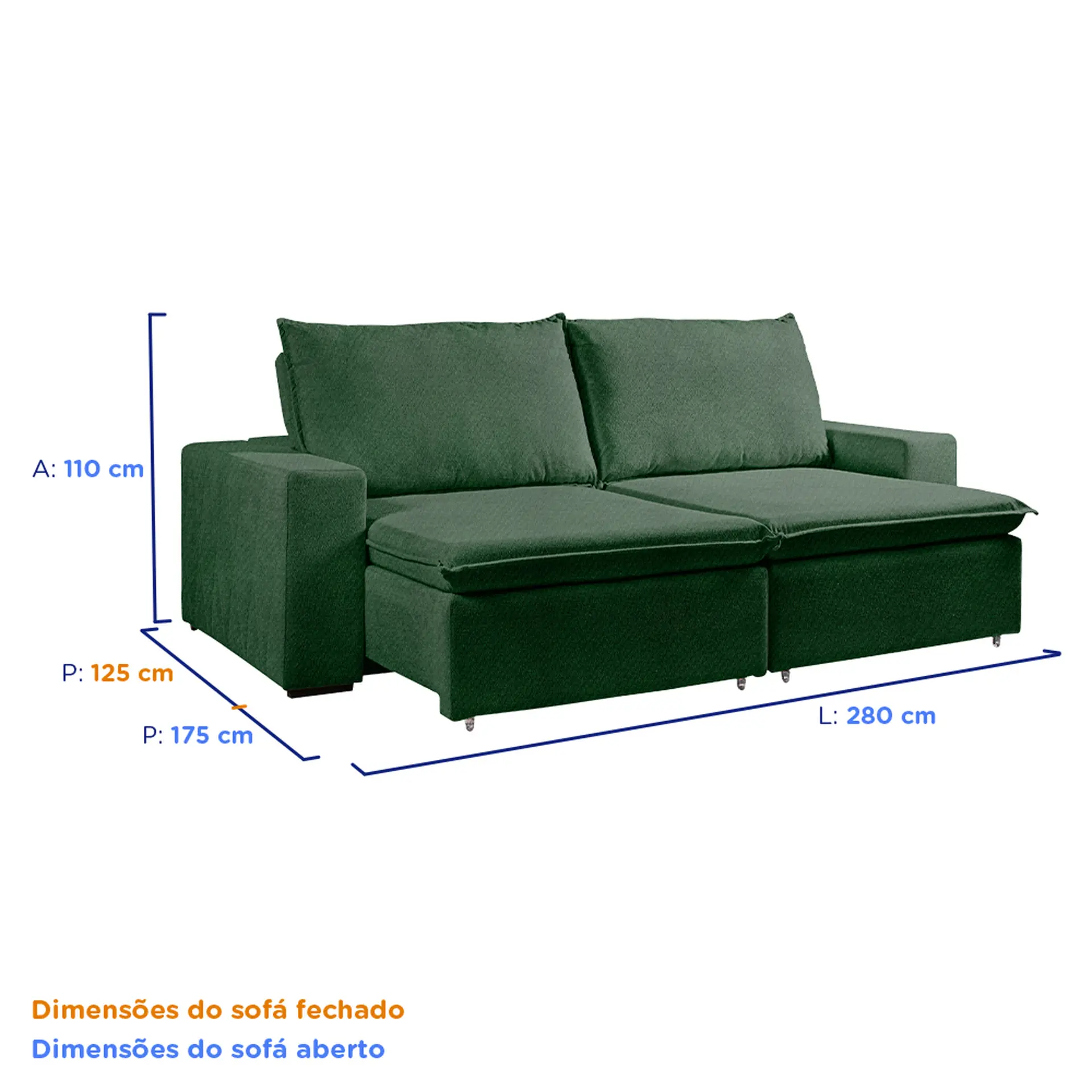 Sofá Retrátil 2 Lugares 280cm Takei Daniela – Verde Floresta