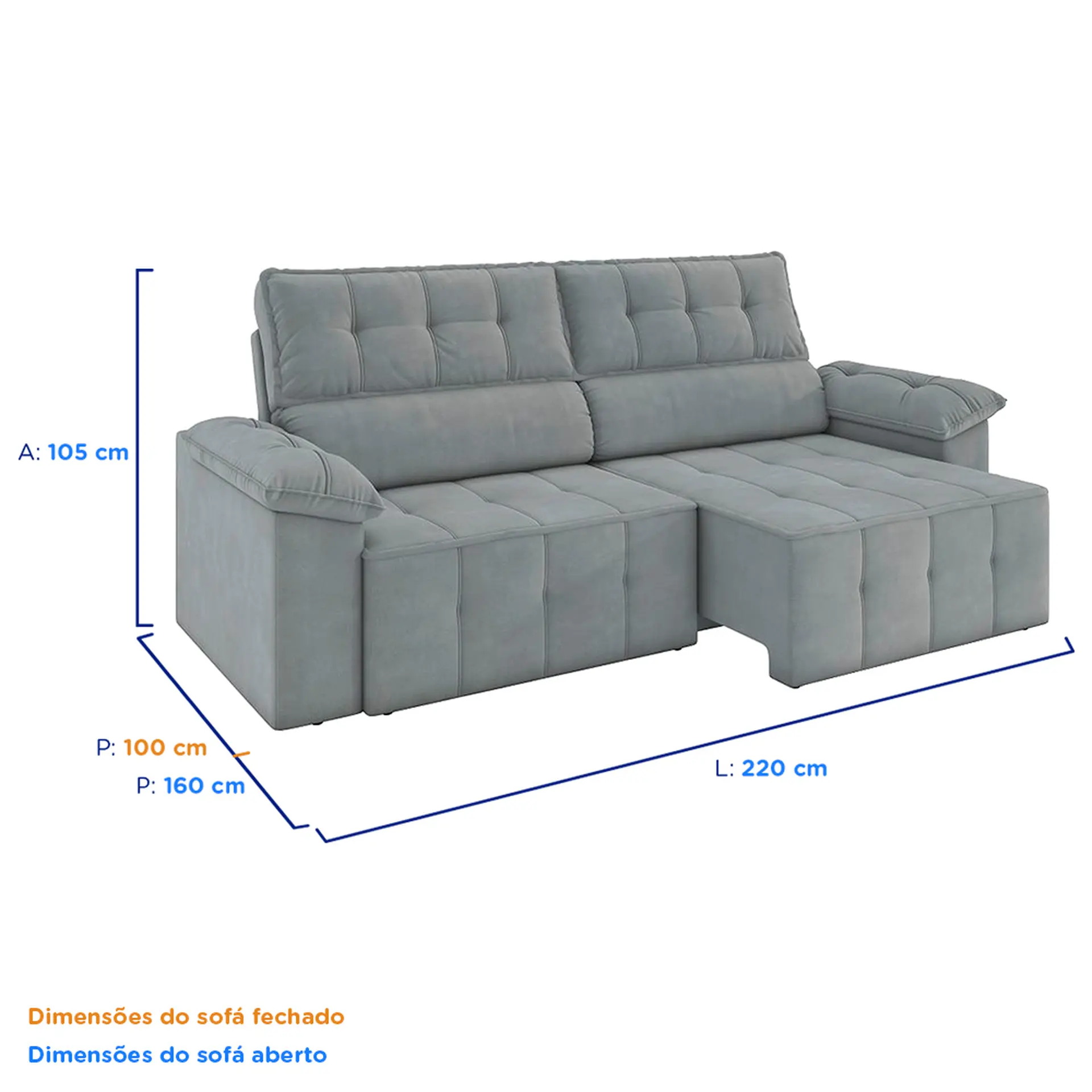 Sofá Retrátil e Reclinável 230cm Toronto Jandaia - Azul