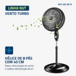 VENTILADOR DE COLUNA MONDIAL TURBO 40CM 8 PÁS 3 VELOCIDADES NVT-40C-8P-NB 140W