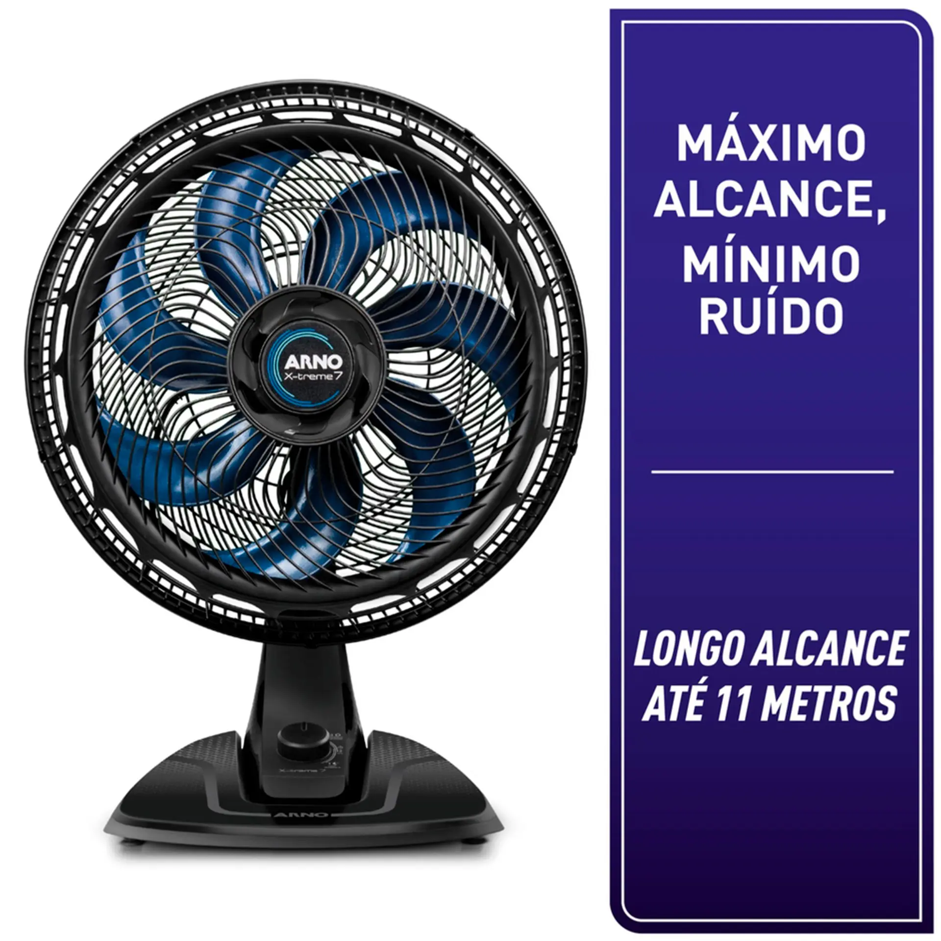 Informações adicionais Produtos Relacionados Ventilador de Mesa Arno X-Treme 7 40cm 7 Pás 3 Velocidade 150W VE70 – Preto – 220 Volts Cód.