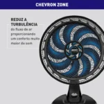 ele oferece ventilação eficiente, mesmo em dias de calor extremo. O ventilador conta com