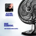 Ventilador de Mesa Mondial 40cm 8 Pás 3 Velocidades 140W VTX-40-8P – Preto/Prata – 220 Volts