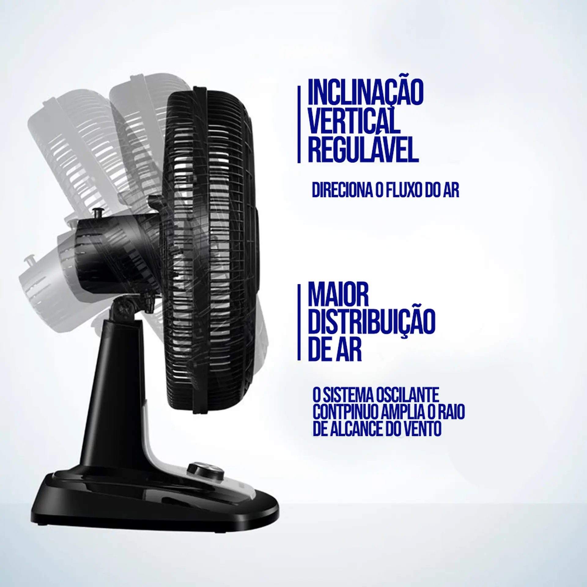 O Sistema Oscilante Contínuo amplia o raio de alcance do vento no ambiente, permitindo uma distribuição de ar mais eficiente nos cômodos da casa.